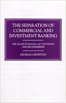 The separation of commercial and investment banking - Trove The separation of commercial and investment banking : the Glass-Steagall Act revisited and reconsidered / George J. Benston. Author. Benston, George J. Published. New York : Oxford University Press, 1990. Physical Description. x, 263 p. ; 23 cm. Series. Studies in banking and international finance. Studies in banking and international finance ... The Separation of Commercial and Investment Banking: The ... The Separation of Commercial and Investment Banking: The Glass-Steagall Act Revisited and Reconsidered [George J. Benston] on Amazon.com. *FREE* shipping on qualifying offers. The 1933 passage of the Glass-Steagall Act by Congress has profoundly effected the way banking has been conducted in the United States. Designed to prevent the kinds of bank failures that resulted from the Crash of 1929 ... THE SEPARATION OF COMMERCIAL AND INVESTMENT BANKING The ... The Separation of Commercial and Investment Banking The Glass-Steagall Act Revisited and Reconsidered George J. Benston John H. Harland Professor of Finance, Accounting and Economics Emory University, Atlanta, Georgia M in association with the MACMILLAN Palgrave Macmillan