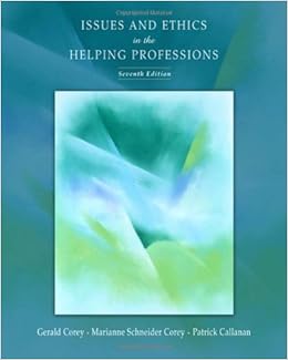 Issues and Ethics in the Helping Professions: Gerald Corey ... Issues and Ethics in the Helping Professions, Updated with 2014 ACA Codes (Book Only) Dr. Gerald Corey. 5.0 out of 5 stars 3. Hardcover. ... He and Marianne Schneider Corey received ASGW's Eminent Career Award in 2001 and the American Mental Health Counselors Association's Lifetime Achievement Award in 2011. He received the Outstanding ... Issues and Ethics in the Helping Professions by Gerald Corey Issues and Ethics in the Helping Professions book. Read 33 reviews from the world's largest community for readers. ... Marianne Schneider Corey, Patrick Callanan, Patrick Callahan, Marianne Schneider. ... While the first half of the class was structured to introduce students to the various issues/ethics involved in being a therapist, the 2nd ... Issues and Ethics in the Helping Professions - Gerald ... Issues and ethics in the helping professions Gerald Corey, Corey/corey/callanan, Marianne Schneider Corey, Patrick Callanan No ... family cultural deal decision develop diagnosis discuss diverse DSM-IV-TR dual relationships effective ethical and legal ethical issues ethics codes evaluation experience explore family therapy feelings Feminist ...