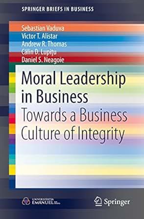 Moral Leadership in Business: Towards a Business Culture ... Moral Leadership in Business: Towards a Business Culture of Integrity (SpringerBriefs in Business) eBook: Sebastian Vaduva, Victor T. Alistar, Andrew R. Thomas, Clin D. Lupiu, Daniel S. Neagoie: Amazon.ca: Kindle Store Moral Leadership in Business: Towards a Business Culture ... Moral Leadership in Business: Towards a Business Culture of Integrity (SpringerBriefs in Business) - Kindle edition by Sebastian Vaduva, Victor T. Alistar, Andrew R. Thomas, Clin D. Lupiu, Daniel S. Neagoie. Download it once and read it on your Kindle device, PC, phones or tablets. Use features like bookmarks, note taking and highlighting while reading Moral Leadership in Business: Towards ... Moral Leadership in Business - Towards a Business Culture ... This brief explores the concept of moral leadership in organizations. Specifically, it examines ways in which companies can strengthen their reputation in the market and increase performance by taking leading positions in the realm of business ethics. It presents research from top scholars of